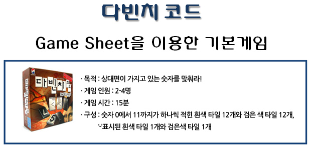 | [신나는 보드게임] 다빈치코드-Game Sheet을 이용한 기본게임 |